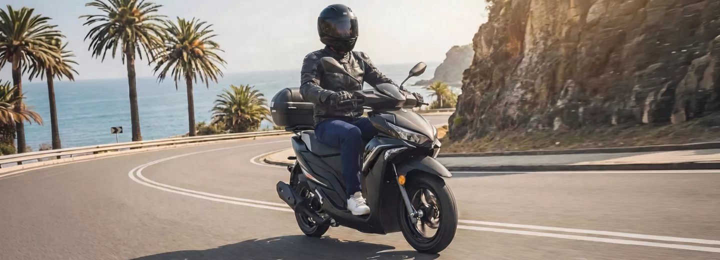 QJMOTOR LTS 50 S : un scooter 50 cm³ monocylindre développant 3,8 ch (2,6 kW), conçu pour une utilisation urbaine efficace et fiable. Il sait se montrer confortable et stable grâce à sa monte pneumatique de 12 pouces.