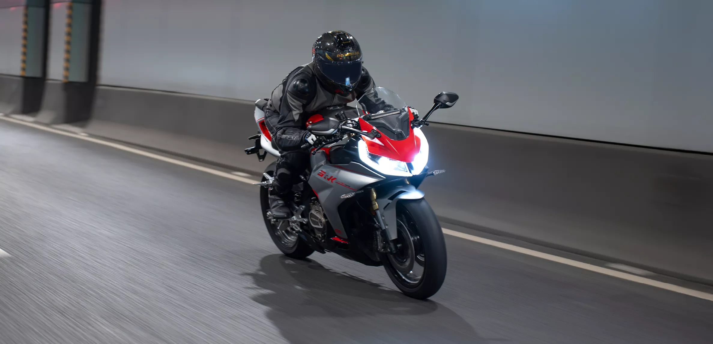 La nouvelle QJMOTOR SRK 421 RR incarne le renouveau des sportives de moyenne cylindrée avec un quatre cylindres de 421 cm³ développant 77,5 ch, taillé pour les hauts régimes et les sensations pures.