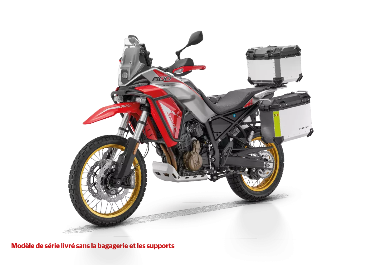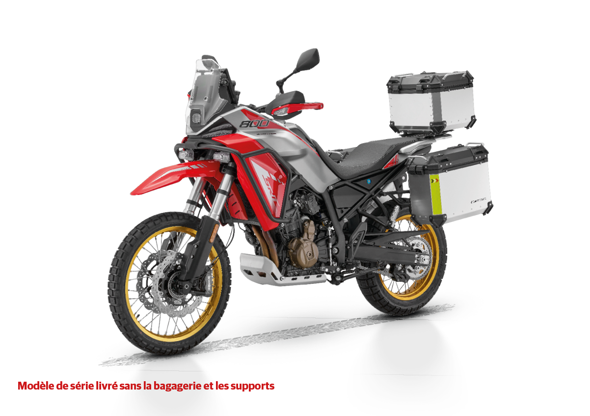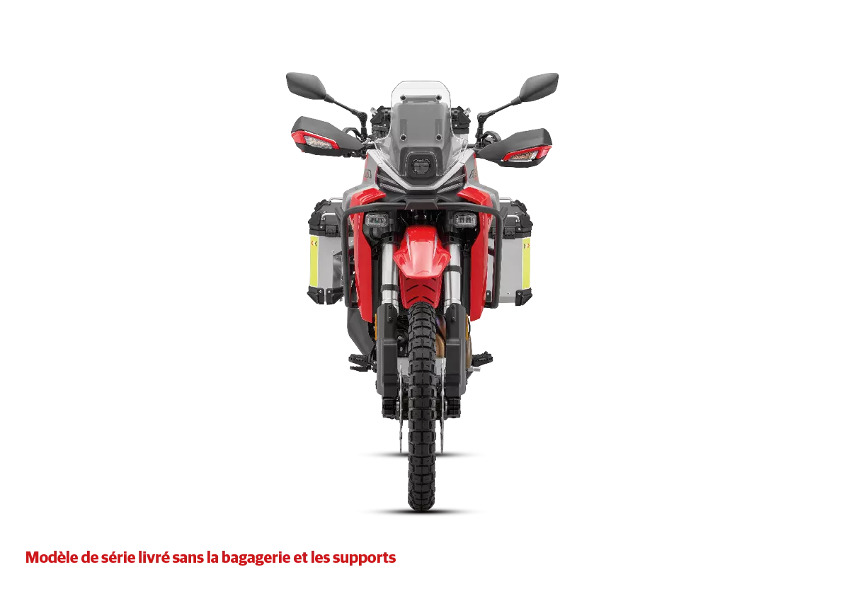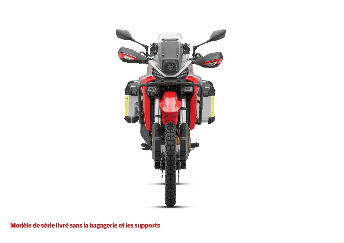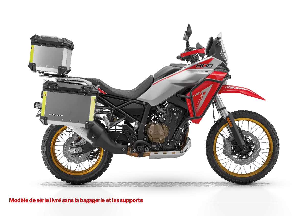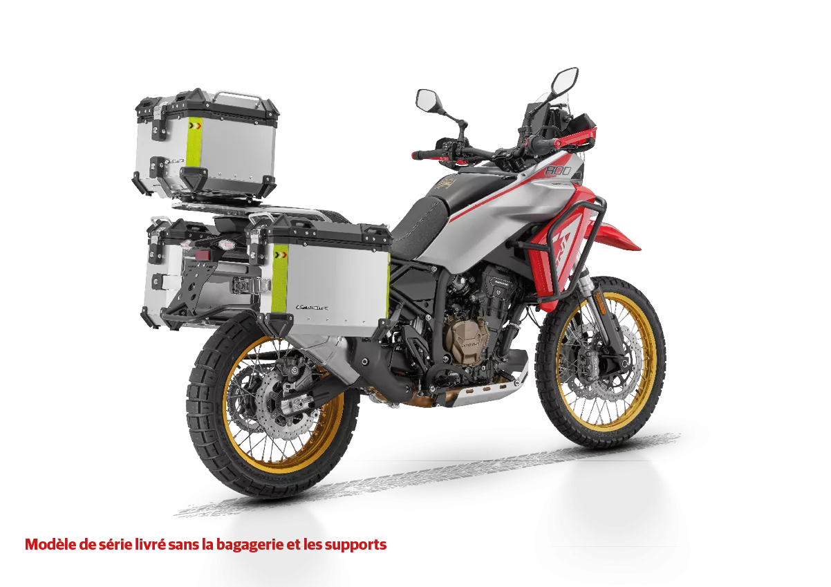 Pensée pour les motards en quête de grands espaces, la SRT 800 RX rivalise avec les références du segment mid-size grâce à son bicylindre parallèle de 799 cm³ développant 95 ch (bridable A2) et 86 Nm de couple. Sa partie-cycle haut de gamme – suspensions Marzocchi, freins Brembo à étriers radiaux, roues tubeless 21’’/18’’– garantit maniabilité, stabilité et confort sur tous les terrains. Dotée de 3 modes de conduite (Standard / Spor t / Pluie), du contrôle de traction, du régulateur de vitesse, d’un quickshifter, du Ride by Wire avec Launch Control, ainsi que d’un écran TFT 5’’ connecté, elle se distingue par un équipement complet de série incluant bulle réglable, protège-mains et sabot moteur.